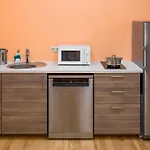 Værelset var kompakt og luftigt, der var alt, hvad vi havde brug for, ligesom et loungeområde og et køkken.